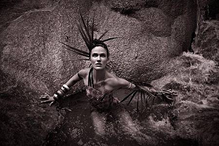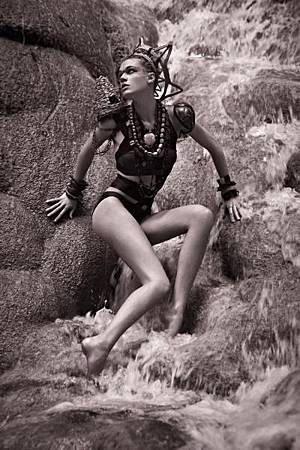 這集參賽者必須穿上不同素材做配飾的衣服站在瀑布底下拍照。