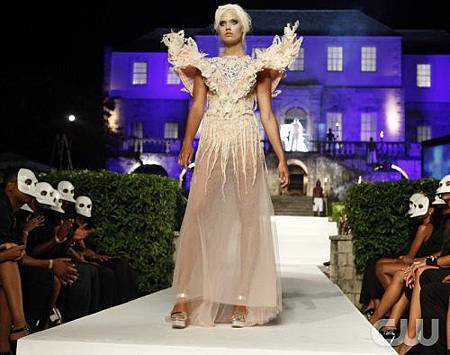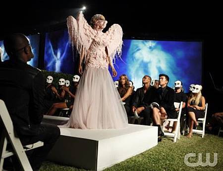 最終走秀的時候,因為這次造型比較古怪誇張,再加上要下樓梯,大家看起來都有點吃力,我覺得Leila最能把造型撐起來,但她台步比較不熟練,連連跌倒。